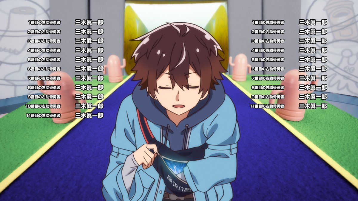 配音阵容方面,主角以及他变成的右第10肋骨由阿部敦担任。而转生神加上其余21根肋骨,全部由三木真一郎一人包揽。顺带一提,左右第12根肋骨因为没有台词,所以没有被计入。目前日本动画界一人多役的最高纪录是《彼岸岛》的山寺宏一,他一个人配过50个角色。三木真一郎这次虽然离纪录还有距离,但“一人配21根肋骨”这个成就,恐怕也是前无古人了。